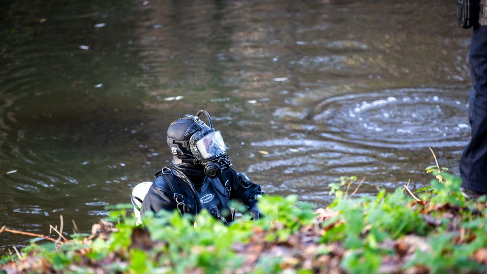 De politie hield de omgeving de hele maandag hermetisch afgesloten voor publiek. Specialistische duikers van de politie werden ingezet om de bodem van de beek nauwkeurig te doorzoeken. Aan het begin van de middag resulteerde dit in de vondst van het wapen.