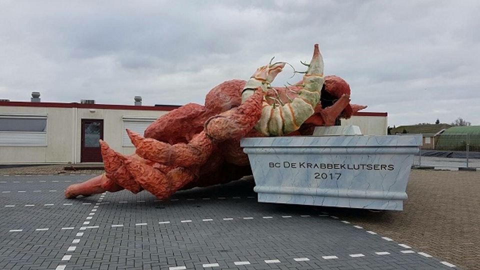 De grote krab trok veel bekijks tijdens de optocht, waar de wagen de vierde prijs won in de categorie B-wagens. Na de optocht is de wagen dus beschadigd geraakt, en dat zou wel eens roet in het eten kunnen gooien op de kijkdag aanstaande zondag op de Kaai.