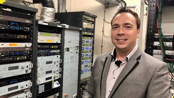 De 126 meter hoge toren in Roosendaal is met 23 andere televisietorens in Nederland eigendom van het bedrijf. Op een doordeweekse dag leidt Matthijs ons rond. De piepkleine onderhoudslift stopt op de dertiende verdieping op zo’n veertig meter hoogte. De ronde ruimte blijkt onderdak te bieden aan een datacenter dat gebruikt wordt voor clouddiensten.