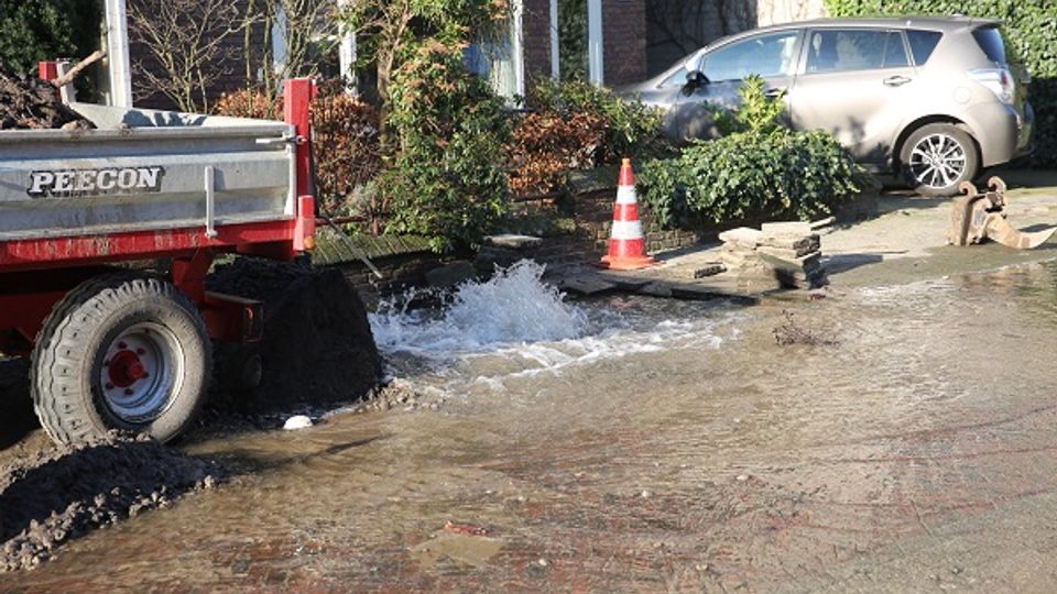 Bij graafwerkzaamheden aan de Dokter Lemmenstraat in Roosendaal is maandagochtend een waterleiding geraakt.