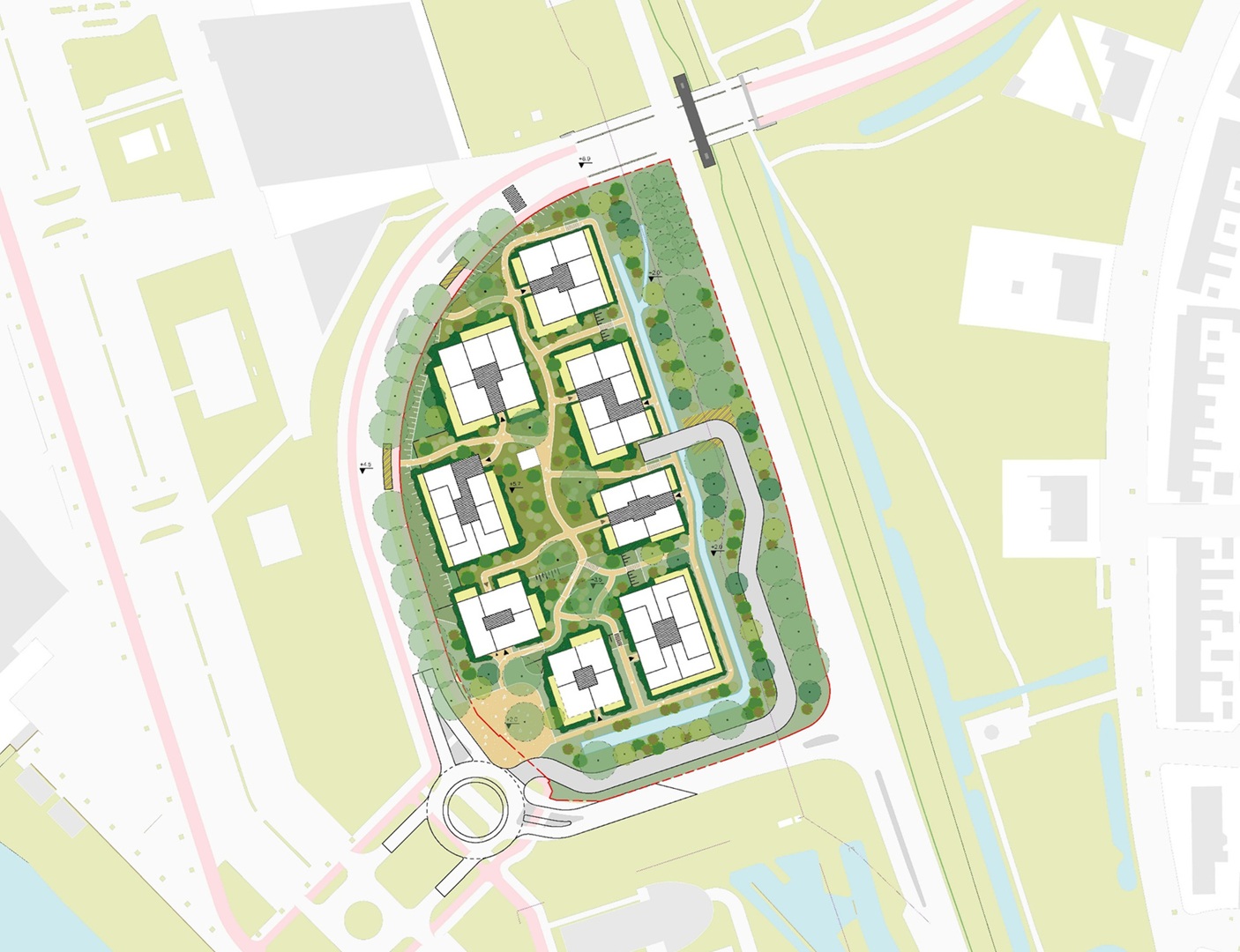 In de vernieuwde opzet is ruimte voor circa 600 woningen. Die passen binnen de eerder afgesproken bouwhoogtes: maximaal zes bouwlagen. Het vorige zomer nog voorgestelde bouwkundig ‘hoogteaccent’, een torenflat van twaalf verdiepingen hoog, is uit de plannen geschrapt – bleek maandag bij de presentatie. Volgens Pals zou het bij nader inzien niet passen bij de omgeving.