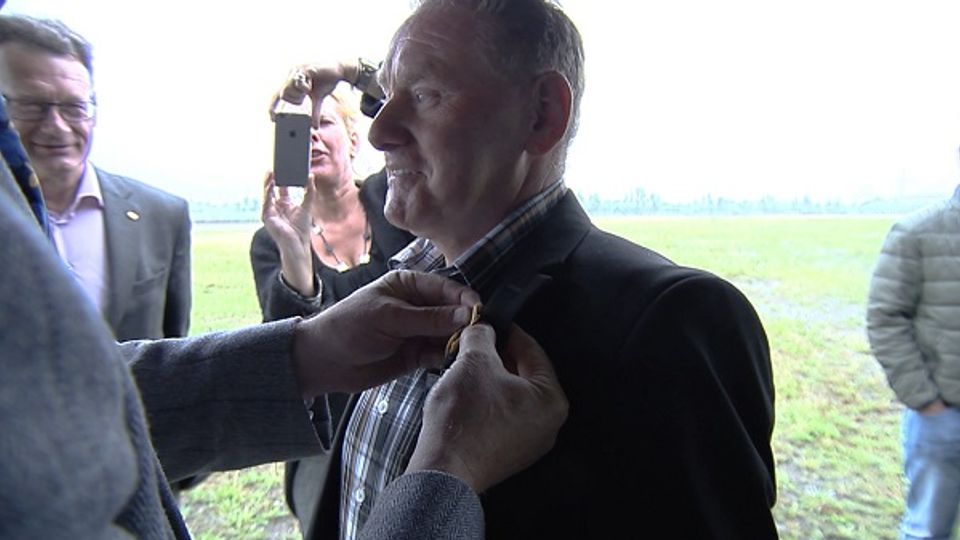Watergraaf Peter Glas van waterschap De Dommel overhandigde de onderscheiding aan het team Keringen en Vaarwegen. Het doel van de onderscheiding is de bevordering van bloemrijke dijken in Nederland.