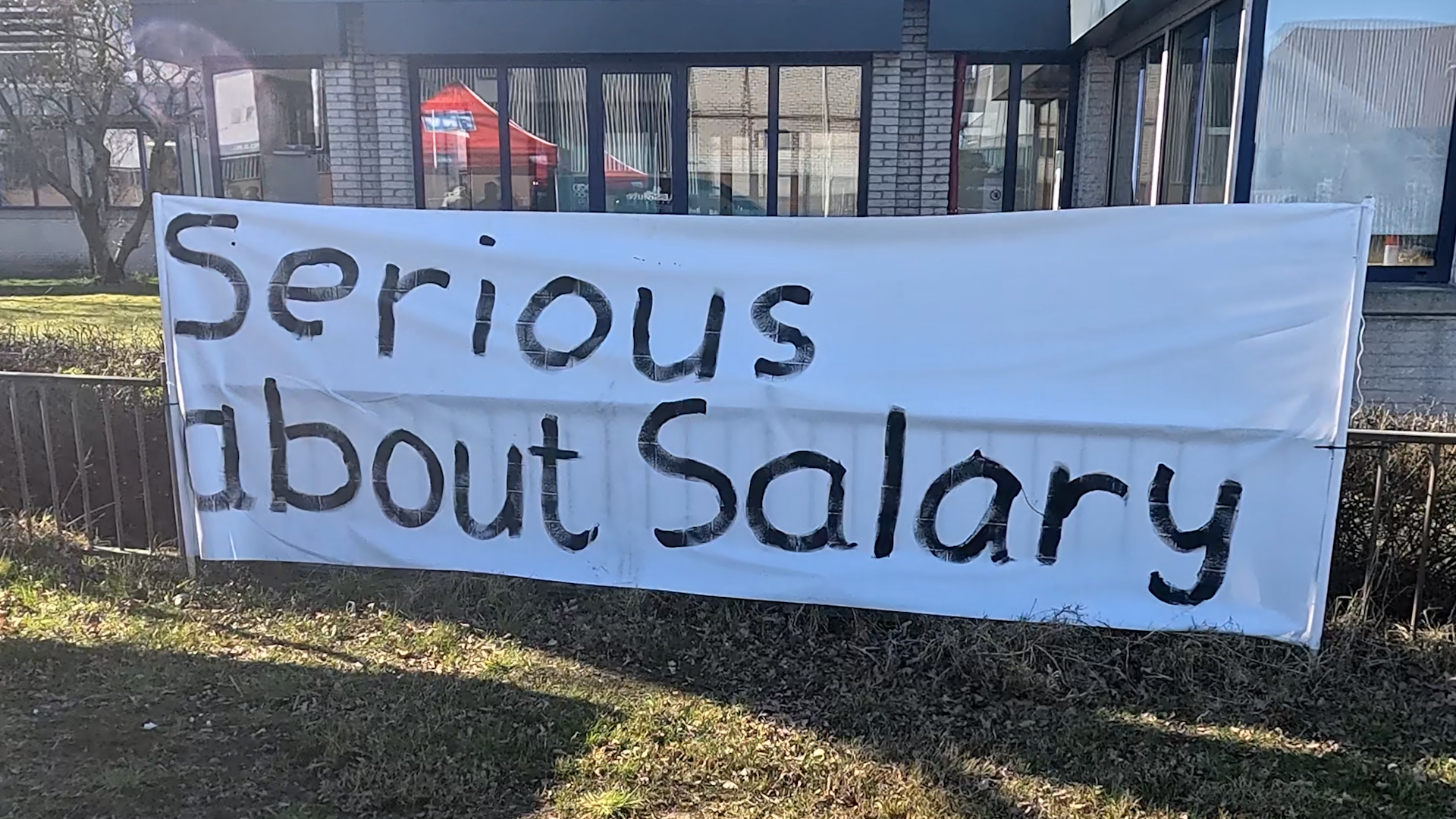 Aan het hek hangt een spandoek en in de stand van de FNV worden koffie en worstenbroodjes uitgedeeld. “Om de werknemers een hart onder de riem te steken”, laat Wilbert Verbeek, bestuurder FNV procesindustrie, weten. In groepjes bespreken de werknemers de problemen met elkaar. “Dat de werkgever niet wil praten geeft aan hoe urgent ze het vinden. Zij hebben de sleutel in handen, maar doen er niks aan”, vertelt Van den Eijnden.