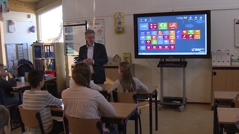 Wethouder Hans Verbraak van de gemeente Roosendaal gaf vandaag een geschienisles aan de leerlingen van groep 8 van KPO Basisschool Lavoor. In het kader van de Dag van de Leerplicht bezocht Verbraak de basisschool om meer informatie te geven over het huidige onderwijsbeleid, maar ook over de geschiedenis daarvan.