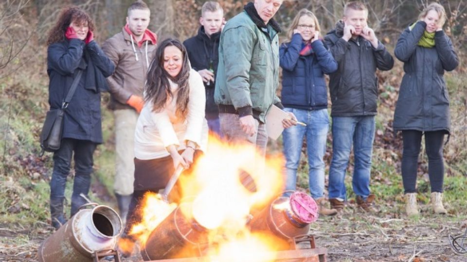 Carbidschieten tijdens de jaarwisseling is een Twentse traditie die met het geldende vuurwerkverbod ook elders in Nederland aan populariteit wint. Daarbij is het de kunst om carbid, een explosief landbouwmiddel, in melkbussen te ontsteken. Dat is zeer gevaarlijk, zeker als men niet ervaren is met de techniek – aldus Adriaansen.