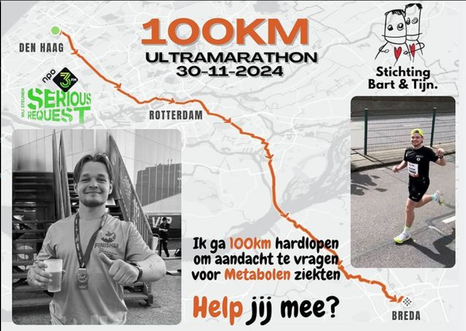 Wouter (23) rent 100 kilometer voor onderzoek naar metabole ziekten