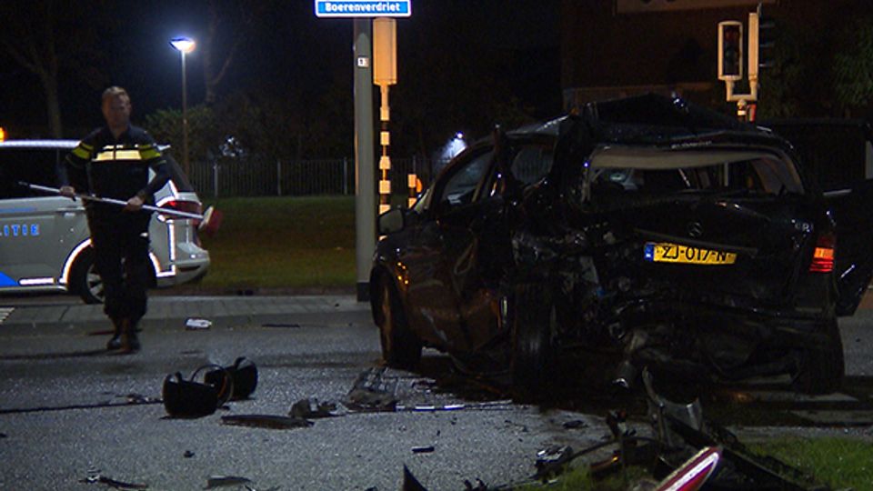 Door de klap reed één van de auto’s het verkeerslicht voor fietsers uit de grond. De schade was enorm en brokstukken lagen wijdverspreid. Allebei de auto’s raakten total loss. De weg lag vol met olie en moest dus worden schoongemaakt. Hoe de 6 inzittenden er aan toe zijn, is niet bekend.