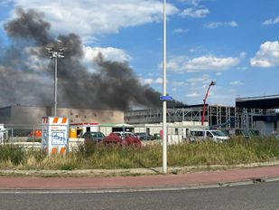 · De brandweer is met veel wagens ter plaatse om het vuur onder controle te krijgen. Ook brandweerkorpsen uit Halsteren en Hoogerheide zijn aanwezig.