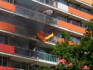 · Vermoedelijk is de brand ontstaan in een gasfles die op het balkon van een van de appartementen stond.
