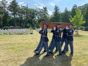 · Donderdag werden de vijf mannen met een plechtige ceremonie begraven op de Britse militaire begraafplaats in Bergen op Zoom.