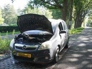 · De bestuurder en een begraafplaatsmedewerker probeerden het vuur nog tevergeefs te blussen met een brandblusser.