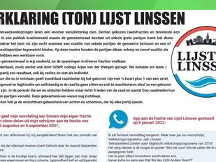 · Met een paginagrote advertentie in De Bode reageert Ton Linssen woensdag op het 'verraad' dat leidde tot het uiteenvallen van zijn partij.