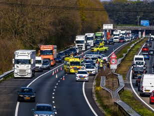 · De snelweg richting de Belgische grens was lange tijd afgesloten. Verkeer moest via de vluchtstrook langs het ongeval rijden.