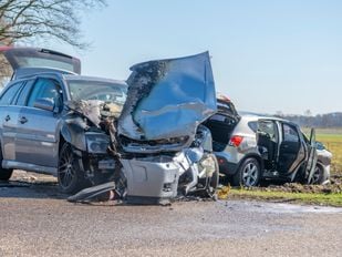 · Na een aanrijding tussen twee voertuigen op de kruising van de Weststraat en Zoomvlietweg vloog zondagmorgen een voertuig in brand.