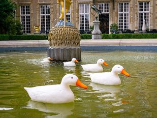 · In de fontein van de Franse Tuin van het Markiezenhof zwemmen sinds kort zeven eendjes. Geen levende eendjes, maar speciaal…