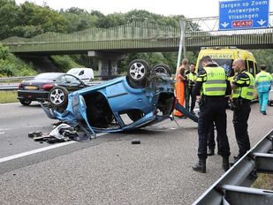 · Op de A58 bij Bergen op Zoom is zaterdagmiddag bij een ongeluk een auto ondersteboven op de weg terecht gekomen.