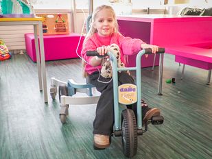 · Deze driewieler is zo gemaakt dat het infuus aan een stang achterop kan worden bevestigd, zodat kinderen zelf veilig kunnen fietsen.