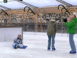 · Het ijs van het Bergs Winterparadijs is goed glad, dat is zeker te zien als een van de eerste bezoekers onderuit gaat op de schaatsbaan. Ook dit jaar staat de schaatsbaan weer op de Grote Markt van Bergen op Zoom.