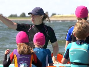 · Zwemjuf Linda Damme geeft ieder jaar zwemlessen in de Oosterschelde om kinderen te leren in zee te zwemmen.