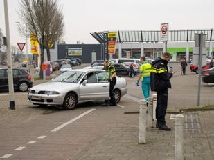 · Het gebeurde bij de uitrit van het winkelcentrum aan de Antwerpsestraatweg. De bestuurder reed met de auto tegen een lantaarnpaal aan.