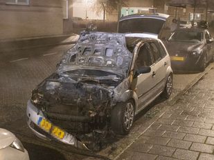 · De voorkant van de auto was al grotendeels in vlammen opgegaan, toen de brandweer aankwam bij het Tolseinde in Bergen op Zoom.
