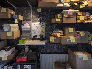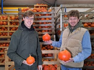 · Kisten vol met biologisch geteelde pompoenen dreigen te verpieteren in de loods van landbouwer Ivar van Dorst.