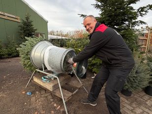 · Eigenaar Corné Roovers runt naast zijn baan een bedrijf in kerstbomen. Elk jaar neemt hij drie weken vrij om zich helemaal te richten op de verkoop.