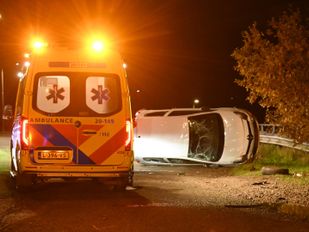 · Bij een fors verkeersongeval op de Liesbosweg in Etten-Leur is dinsdagochtend een auto op zijn kop beland.