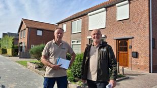 · Jack van den Berg en Gerard van Hout maken een kleine schets van een woning om aan te geven wat goede plekken zijn voor nestkasten.