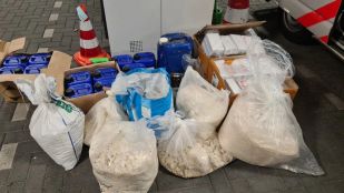 · Agenten troffen tientallen kilo’s grondstoffen aan voor de productie van harddrugs.
