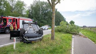 · De auto schoot van de weg en kwam, via de berm en een parallelweg, terecht in een sloot langs een akker in de Ketelpolder.