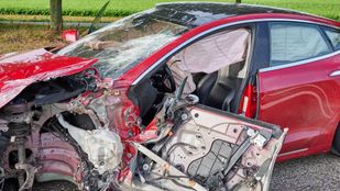 · De bestuurder van de rode Tesla wilde een andere auto inhalen en reed in op een bestelbus die van de andere kant tegemoet kwam.