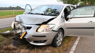 · Door de klap raakte de voorkant van de auto flink beschadigd. De bestuurster van de auto kwam met de schrik vrij.