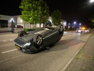 · In Roosendaal zijn maandagnacht twee mensen gewond geraakt bij een botsing tussen twee auto’s. Een van de auto's kwam op zijn kop terecht.