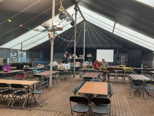 · Wouw maakt zich klaar voor de koningsfeesten van 23, 26 en 27 april. In de tent zijn vrijwilligers nog druk met de laatste voorbereidingen.