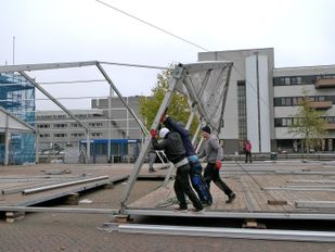 · De opbouw van de ijsbaan op het Kadeplein in Roosendaal is dinsdagochtend begonnen. Op 26 november gaat de ijsbaan open voor publiek.