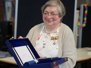 · Ze biedt al jaren een helpende hand bij de Zonnebloem. Burgemeester Han van Midden benoemde haar tot Lid in de Orde van Oranje-Nassau.