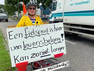 · Gemma Engelen (73) uit Zegge voert actie voor de aanleg van een fietspad langs de Leemstraat in Roosendaal.