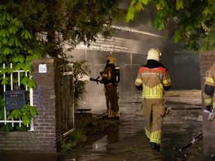 · Op een oud schoolterrein aan de Hoogstraat is maandagochtend brand ontstaan op het dak van een overkapping.