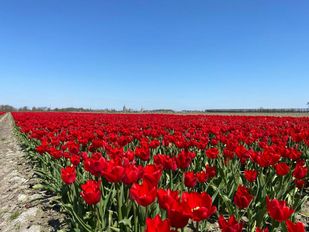 · Het is een lust voor het oog: het rode tulpenveld langs de A58 bij Wouw. Iedereen die richting Bergen op Zoom gaat kan de bloemenpracht zien.