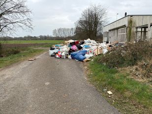 · Op de locatie aan de Antwerpseweg bij de grens wordt veel afval gedumpt. Daardoor is er een grote berg troep ontstaan die ook de weg blokkeert