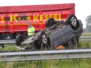 · Op de A58 bij Roosendaal is woensdagmiddag een auto op zijn kop beland na een ongeluk. Eén persoon raakte gewond.