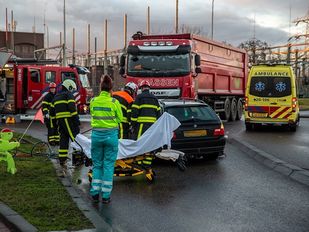 · Op een kruising van de Leemstraat met de Nelson Mandelaweg zijn donderdagmiddag een vrachtwagen en een auto met elkaar in…
