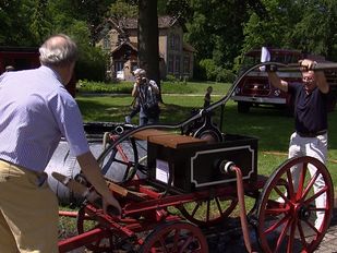 · Vrijwilligers van Stoomclub Suiker Unie hebben maandagmiddag een gerestaureerde brandspuit uit 1885 overgedragen aan jonkheer Eric Speeckaert van landgoed Wouwse…