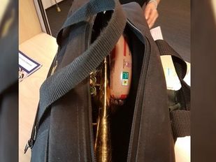 · Een wel heel opvallende vondst op de Bloemenmarkt in Roosendaal. Een tas met daarin een trompet en een leverworst. Jack…