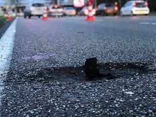 · Op de N262 bij Roosendaal, vlak voor de stoplichten op de Antwerpseweg, stak woensdagmorgen een stuk ijzer door het wegdek.