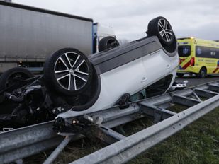 · Een automobilist botste achterop een andere auto en kwam vervolgens in botsing met de vangrail.