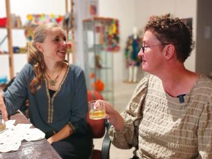 · Kunstenaressen Leonie Muller en Gea Korpel-Beskers geven leegstand in Roosendaal letterlijk kleur en sfeer. Hoewel hun thema toch rouw en verlies is.