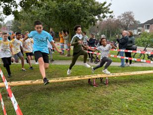 · De leerlingen van basisscholen De Klimroos, De Klaverweide, De Saffier en De Cortendijck deden woensdag mee aan de kleurrijke obstakelrun.