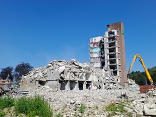 · De sloop van flatgebouw De Brink in de Roosendaalse wijk De Kroeven gaat voorspoedig. De sloopwerkzaamheden trekken veel bekijks.